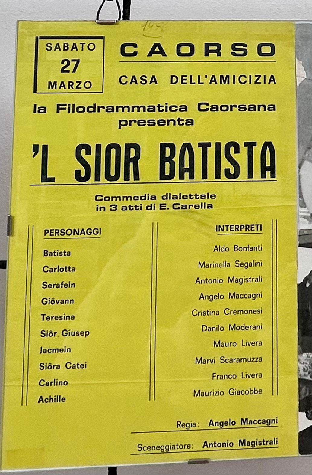 La Filodrammatica caorsana, invece, è nata ufficialmente nel 1976 quando Maccagnoni si è trasferito a Caorso e al gruppo si sono uniti Marvi Scaramuzza, Carlo Carollo, Marina Orzi, Maurizio e Lucia Giacobbi, Stefano Gregori, Cristina Cremonesi, Fabrizio Passera e Mauro Mori. Fra gli attori dei primi anni anche Linda Ghisoni, oggi sottosegretario per i fedeli laici in Vaticano. La prima sede del gruppo è stata all’oratorio Casa dell’amicizia.