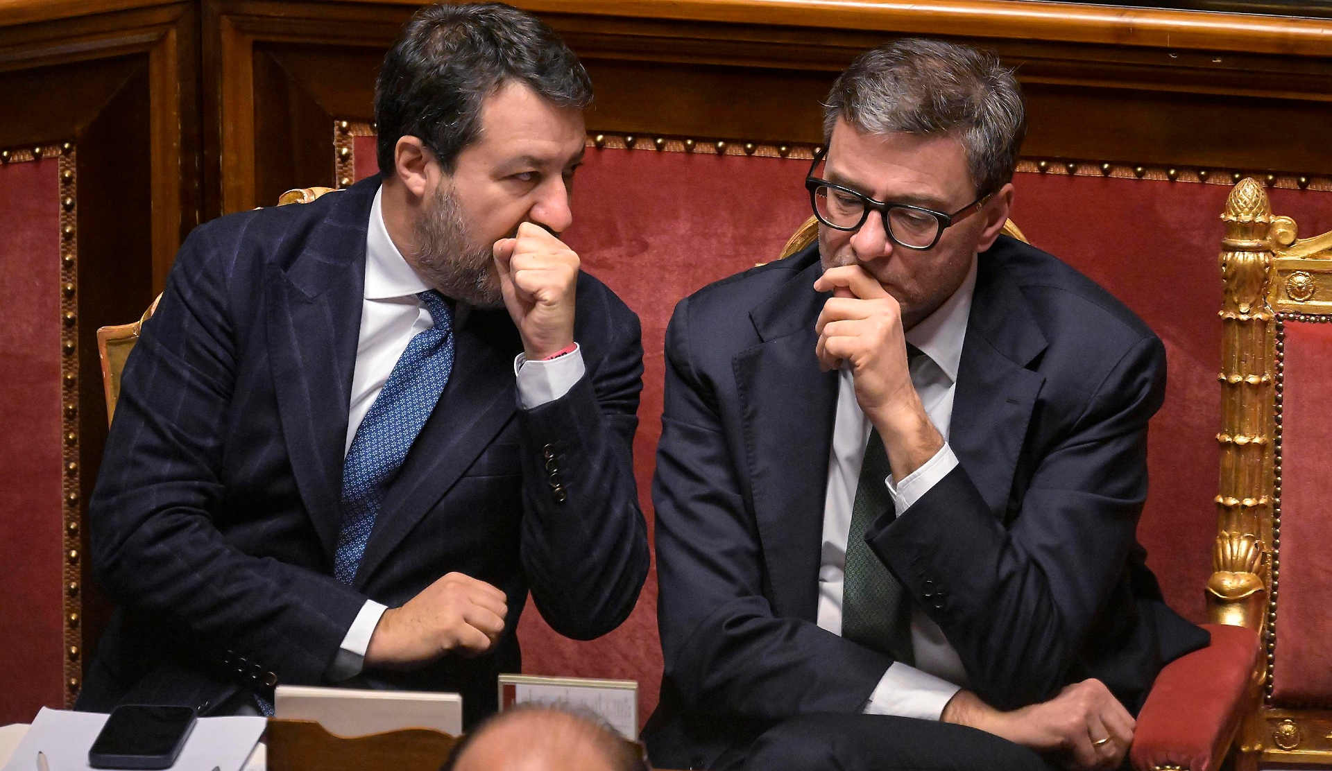Matteo Salvini e Giancarlo Giorgetti e l’ad Enrico Mainardi
