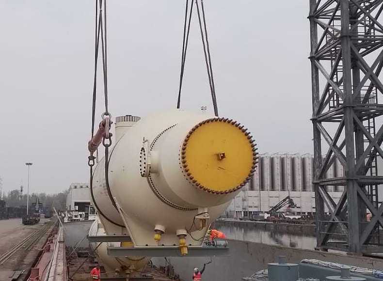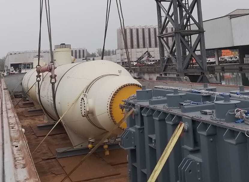 Le operazioni di carico sono iniziate sabato pomeriggio, quando la grande gru della ditta Fagioli ha prelevato i due scambiatori dell'azienda Brembana Rolle arrivati dal Bergamasco su due Tir: le strutture portuali cremonesi e il Po hanno evitato due carichi eccezionali che avrebbero dovuto percorrere quasi 300 chilometri, la distanza tra Bergamo e Venezia, con grandi disagi per il traffico e usura delle strade.