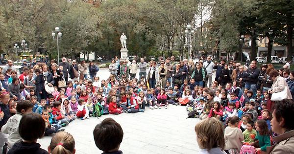 La scuola primaria “Colombo Aporti” ha voluto ricordare quest’evento recandosi venerdì 4 ottobre, Giornata nazionale della pace istituita con legge del 2005, con tutti gli alunni e tutti i docenti ai giardini di piazza Roma. Ogni bambino ha appeso alla pagoda un disegno e una frase sull’importanza della pace e della fraternità tra popoli, il suo sogno di pace. Leggendoli si scopre un concetto di pace intesa non solo come assenza di guerra, ma soprattutto come azioni di aiuto, cooperazione e solidarietà da realizzare proprio a partire dalla scuola, dalla città al mondo. Gli alunni hanno poi composto ai piedi della pagoda la bandiera multicolore della pace utilizzando dei sassi colorati. Al termine, tutti i presenti sono stati invitati ad osservare un minuto di silenzio per ricordare le vittime del tragico naufragio avvenuto a Lampedusa. La scuola primaria “Colombo Aporti” dal 2006 è impegnata in progetti di educazione alla pace e ai diritti umani promuovendo nel corso dell’anno diverse iniziative in rapporto con il territorio, le famiglie e varie istituzioni locali, facendo maturare nei bambini la consapevolezza di poter essere protagonisti nella costruzione della pace e nel rispetto dei diritti umani.