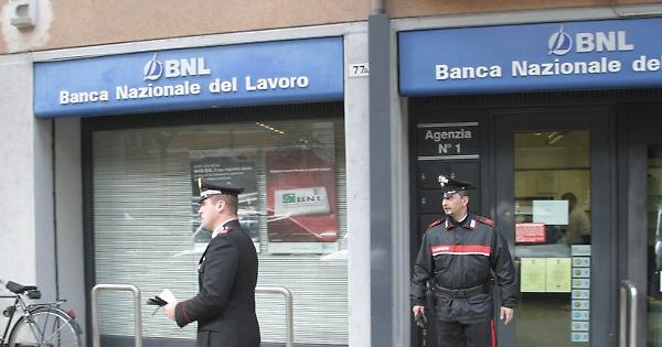 Carabinieri davanti alla sede della Bnl di via Ghinaglia