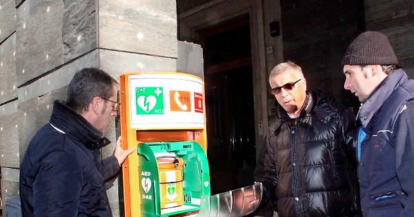 L'installazione del defibrillatore in piazza Stradivari
