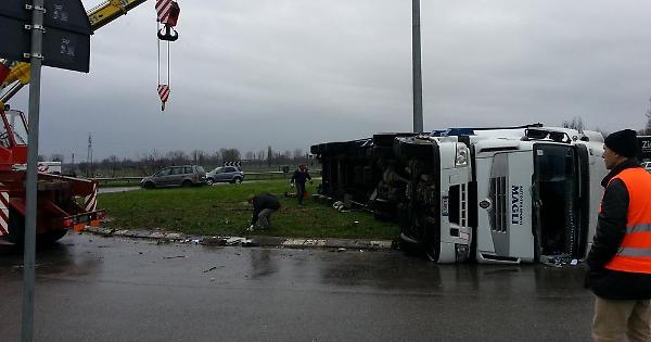 Il camion è della ditta Autrasporti Magli di Rezzato (Brescia) con deposito a Spinadesco, da dove è partito diretto a Torino carico di coils prelevati da Arvedi. Stando ad una prima ricostruzioni, l'autista avrebbe perso il controllo dell'autoarticolato che si è ribaltato in mezzo alla rotonda. I coils sono volati sulla pista ciclabile e nel campo adiacente la strada.