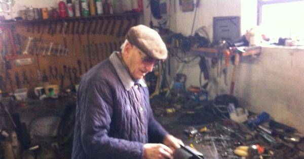 Rino Mattarozzi all'opera nella sua 'officina casalinga'