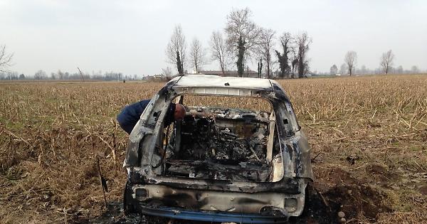 La carcassa dell'auto bruciata ritrovata a Soncino