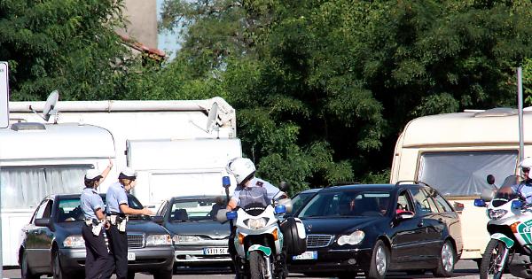 Uno sgombero di una carovana di nomadi nel piazzale della Fiera