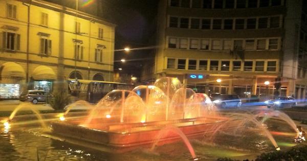 CREMONA - Sabato 22 marzo - Giornata mondiale dell'acqua - torna a funzionare dopo oltre un anno la fontana di piazza Cadorna, Venerdì sera l'ultimo sopralluogo dell’assessore comunale ai Lavori Pubblici Francesco Zanibelli e dell’ingegnere di Padania Acque Andrea Guereschi. Funzionamento perfetto ed effetto suggestivo.