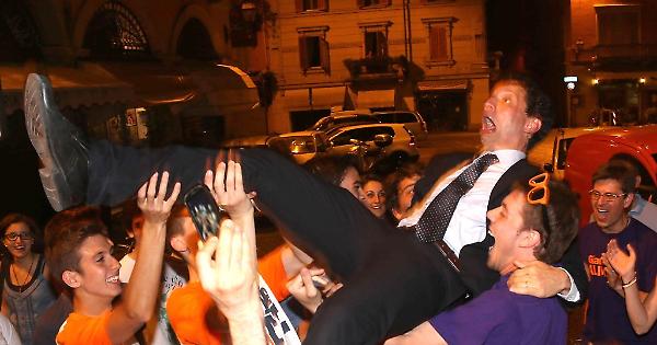 Gianluca Galimberti arriva, sorridente, sudato e emozionato con la sua bicicletta in Largo Boccaccino dove lo attende una folla festante davanti al comitato elettorale. «Volevo dire che sono molto commosso. Voglio anche dire che le parole sono importanti e quella che voglio dire adesso è questa: grazie. Voglio dire grazie anche a Perri e alla sua giunta. La vittoria ottenuta, vorrei dire, è la vittoria di tanti perché le cose non si fanno mai da soli ed è anche la vittoria di un desiderio di rinnovamento. Non dovrei chiamarmi primo cittadino, ma ultimo cittadino perché va ricostruito il senso delle istituzioni a servizio di tutti e perché i nostri poteri forti sono i cittadini a partire dai più deboli. E così sarà. Noi dobbiamo portare il coraggio della mitezza nella politica. Noi, io in particolare, sapremo assumerci fino in fondo la responsabilità di questa vittoria, dando tutti noi stessi. Adesso la sfida si fa davvero impegnativa e difficile, ma affrontiamola insieme». Gianluca Galimberti, durante i festeggiamenti, ha ricevuto la telefonata dello sfidante Oreste Perri e lo ha ringraziato per il lavoro fatto in questi cinque anni per la città.