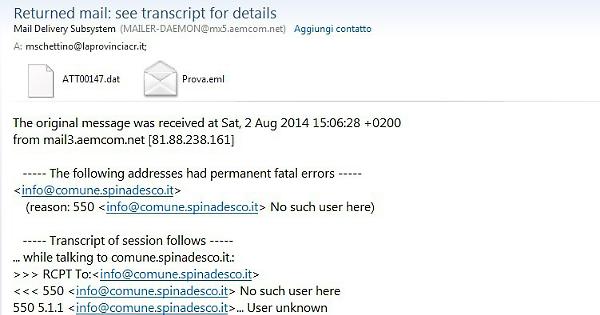 E più sotto il recapito, una casella di posta elettronica: info@comune.spinadesco.it «Ne abbiamo parlato all’interno del gruppo di maggioranza — spiega il sindaco Lazzari, dopo un appuntamento preso per telefono perchè il recapito mail indicato non funziona — e abbiamo identificato una persona, il consigliere Romeo Anadir Bassi, che si occuperò di smistare le richieste di comunicazione agli assessori competenti. E’ un’iniziativa volta a migliorare l’informazione e a renderla più precisa e completa. Non solo, anche i cittadini potranno usare questa casella per le loro segnalazioni». I cittadini però faranno forse meglio a tentare di fare le domande di persona agli amministratori: la casella di posta elettronica indicata dal Comune infatti non funziona. Non è attiva.