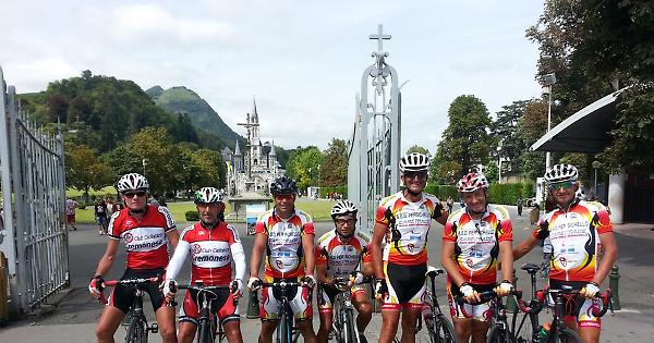 LOURDES (Francia) - La passione per le due ruote, ma anche un sincero affetto alla Madonna di Lourdes ha fatto compiere a sette cremonesi un'impresa davvero coraggiosa: raggiungere il santuario francese in bicicletta (circa 1.300 chilometri) in soli sette giorni. Il gruppo, giunto alla meta nella mattinata del 9 agosto, è composto da Danilo Grassi (ASD Persichello), Emilio Carubelli (ASD Persichello), Francesco Mandarini (ASD Persichello), Mauro Ghisolfi (ASD Persichello), Giovanni Baronio (ASD Persichello), Enrico Porro (GS Cignone), Massimiliano Pagetti (CC Cremonese), Daniele Bosi (CC Cremonese). Ai 'magnifici sette' bisogna aggiungere Roberto Corciulo che ha seguito con una macchina di appoggio.