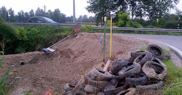 SONCINO - Un mucchio di pneumatici vecchi e malmessi accumulato sulla scarpata del crocevia tra l’ex statale Soncinese per Bergamo e la strada comunale per Villanuova, un chilometro a nord del centro abitato di Soncino. Non si tratta di uno scarico abusivo di rifiuti speciali ma, forse, una dimenticanza della ditta operatrice che ha provveduto allo scavo e alla posa delle tubazioni del nuovo metanodotto che consentirà il collegamento diretto tra Milano e Verona per la Russia.
