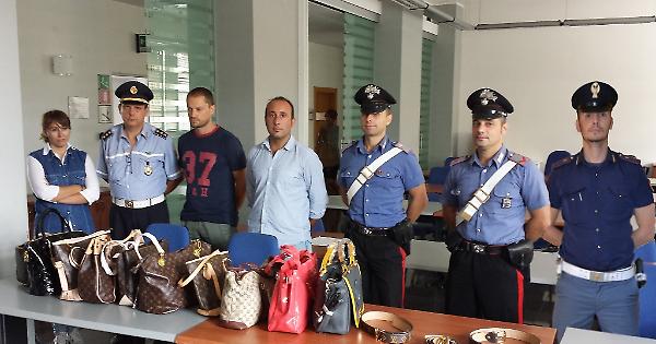 Forze dell'ordine con la merce sequestrata