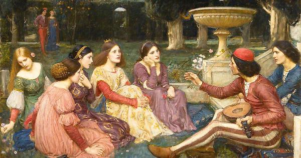 «La giovane brigata ha la possibilità di ridare vita ad una società ordinata, uno sforzo quotidiano e che si riflette nell’ordine della narrazione. Tutto ciò è in contrasto con quanto accade fuori, quanto accade nel mondo in cui impazza la peste. È un po’ come nelle Mille e una notte».