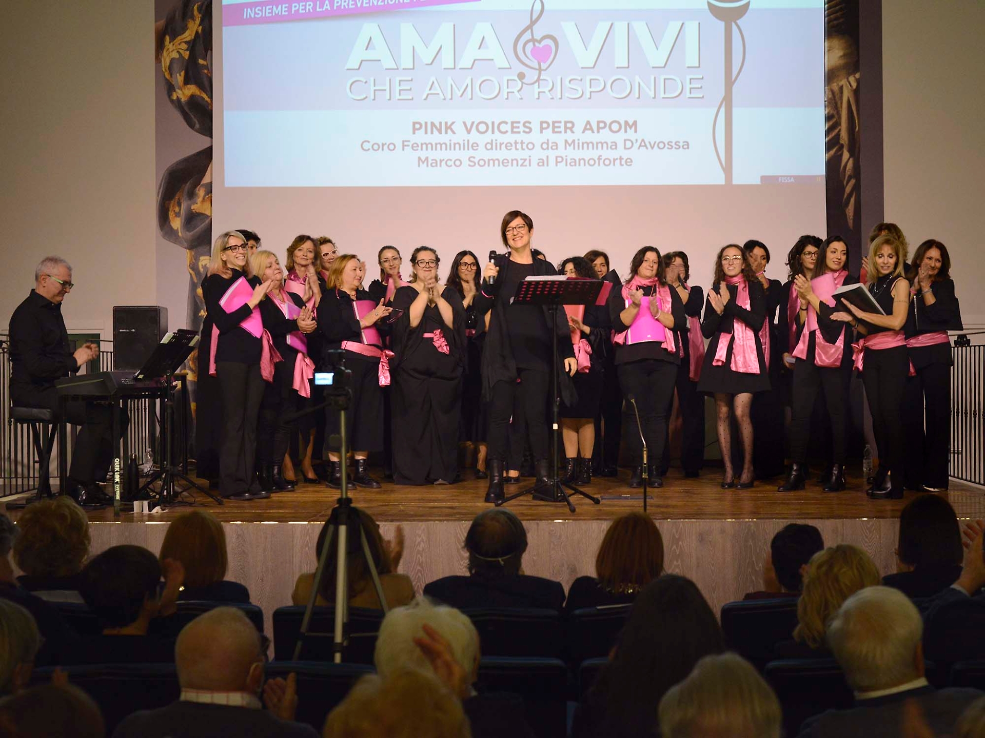 Quello con Apom, l’associazione costituita nel 2003 e da allora da sempre impegnata nella promozione e divulgazione della prevenzione alla salute con particolare attenzione alle patologie oncologiche mammarie, è per le Pink Voices un rapporto di grande affezione. «Apom significa anche momenti aggregativi per pazienti e familiari, nell’intento di promuovere la socializzazione ed il benessere psico-fisico — aggiunge Elena Irma — e quindi eccoci qui. Con grande gioia». In platea l’assessore Rosita Viola e Alberto Bottini, fino al 2016 direttore della Breast Unit dell’ospedale di Cremona. La vocazione solidaristica delle Pink Voices non si ferma qui, sabato prossimo appuntamento alla chiesa del Maristella con un concerto a favore di Cremona for Kenia. Al piano, come di consueto, Marco Somenzi.
