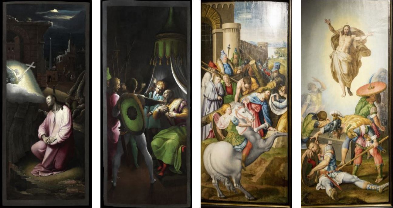 Chissà che meraviglia sarà stato il colpo d’occhio sull’Oratorio di Santa Lucia, almeno 15 tavole (per qualcuno addirittura 25) con episodi della Passione, tutte uguali nel formato verticale, dai colori brillanti e intensissimi che il committente, Antonio Pallavicino, volle fossero poste all’interno di una boiserie di legni pregiati. Di quanto fossero tanto belle quanto ammalorate ce lo racconta l’abate Ramon Ximenes, precettore del marchese Daniele Ala, in una lettera del 1802, che ha permesso a Visioli e Tanzi di chiudere il cerchio su quasi mezzo secolo di studi.