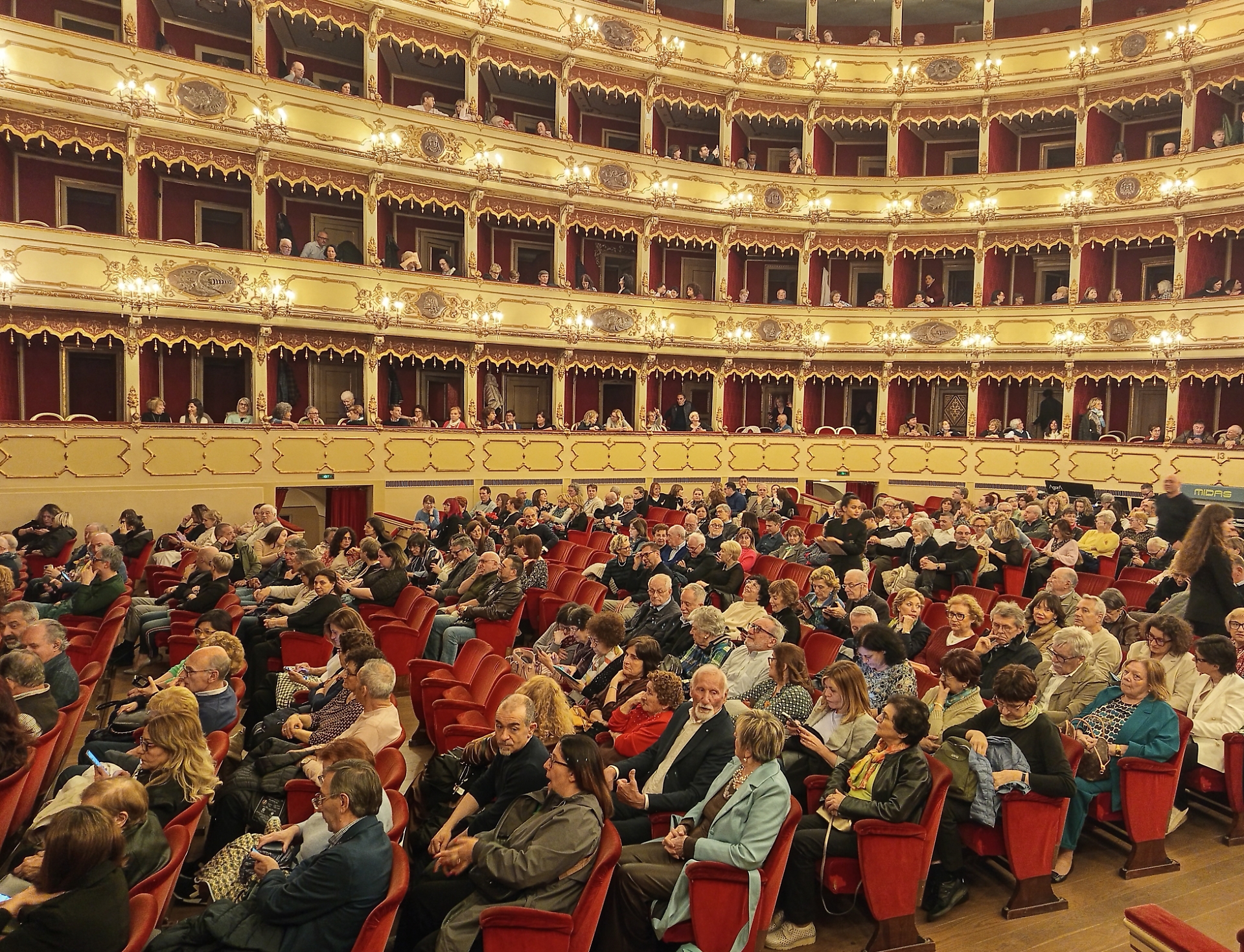 Fra battute, passi di danza sciolti, aneddoti e occhiate complici al pubblico, Ranieri confeziona anche stavolta uno spettacolo-recital impeccabile, vecchio stile, con tanto mestiere e tanta passione, e per questo incrollabile. Ad accompagnarlo è stata una big band di musicisti formata da Stefano Proietti al pianoforte, Luca Trolli alla batteria, Arnaldo Vacca alle percussioni, le chitarre di Andrea Pistilli e Tony Pujia, al basso Stefano Puglisi, al sax Max Filosi e con le tre cantanti musiciste Cristiana Polegri (sax), Valentina Pinto (violino) e Giovanna Perna (tastiere). Pubblico del Ponchielli entusiasta, applausi prolungati e riconoscente.