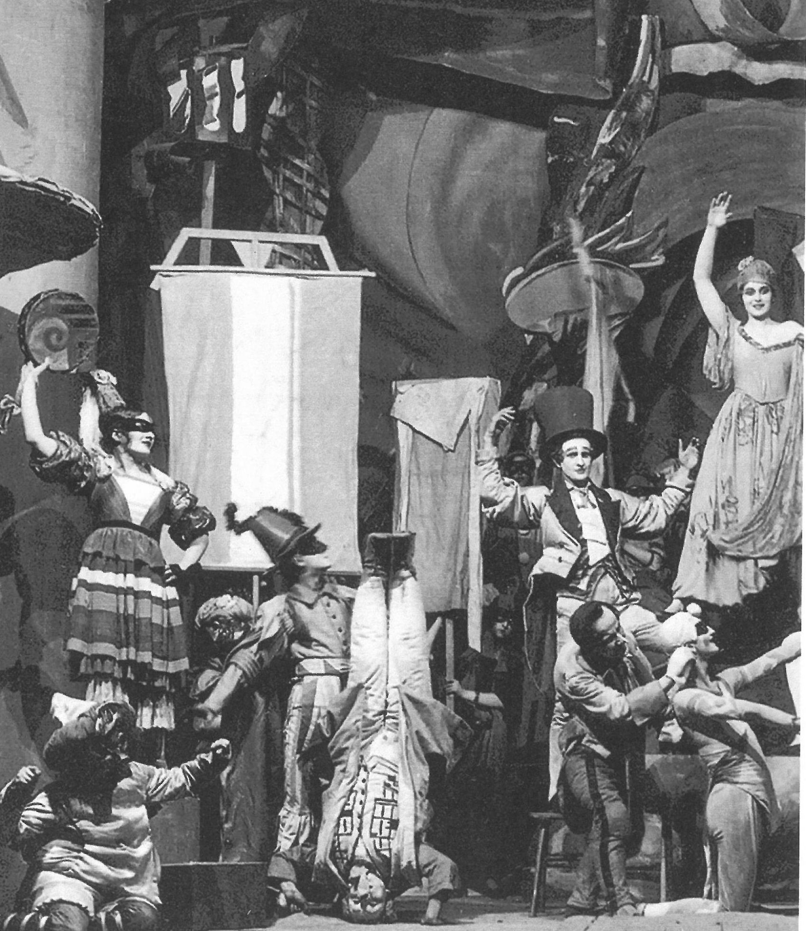 Una scena delle fantastiche arlecchinate Giroflé-Giroflà di Aleksandr Tairov