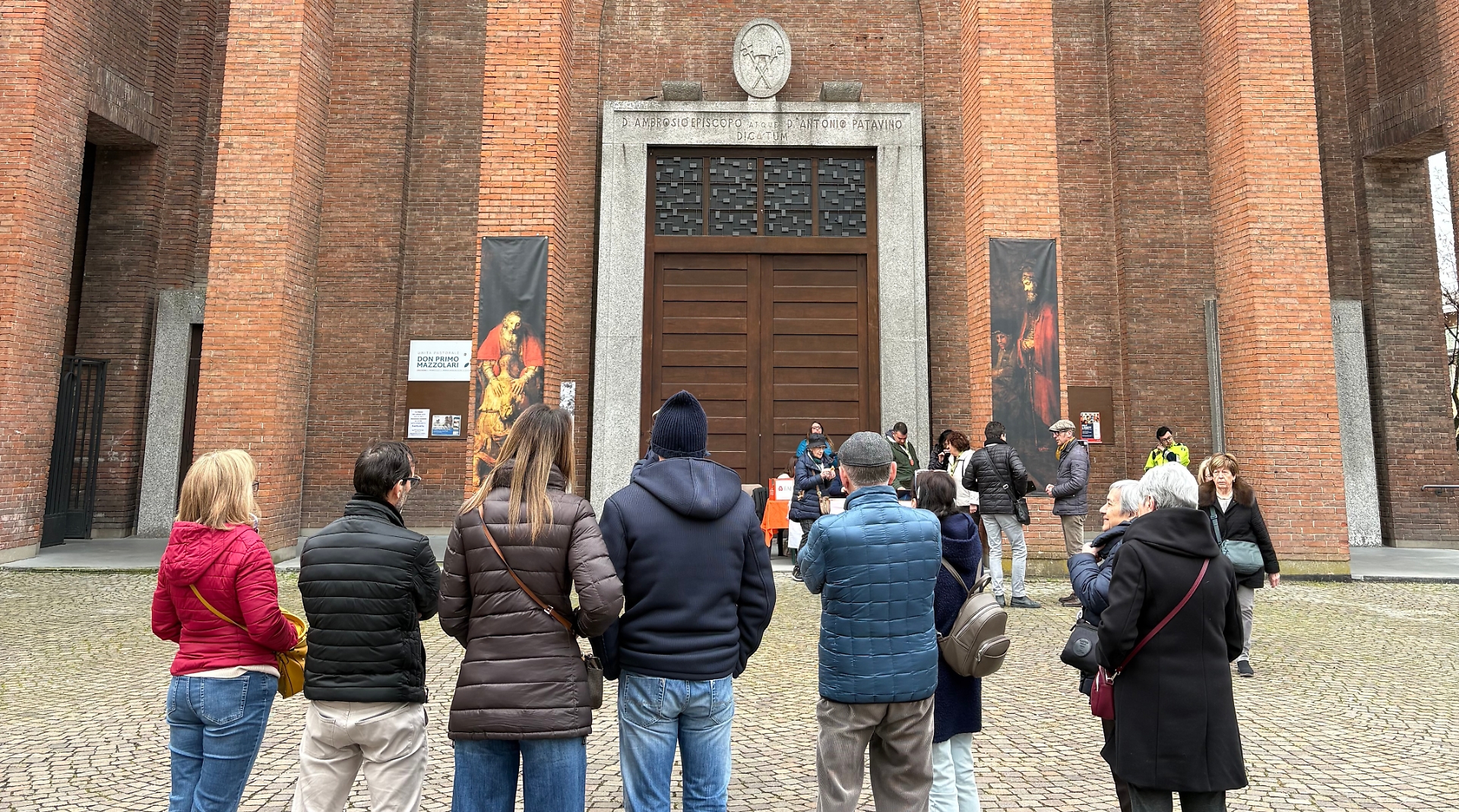 Volontari del Fondo Ambiente Italiano davanti a Sant’Ambrogio