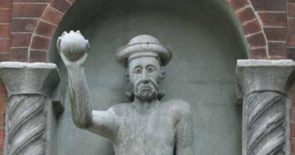Ma ancora di più a infiam- mare la fantasia dei cremonesi fu la statua trovata nel ‘400 durante alcuni lavori di risistemazione della cattedrale, da subito venne identificata con Giovanni Baldesio e la sua impresa: la vittoria sul figlio dell’imperatore e il trasporto della palla d’oro sulla cuspide del Torrazzo in segno di ringraziamento. Ad osservare bene la statua però è ovvio che qualcosa non quadra. Si tornerà poi sui dettagli, ma una cosa salta subito agli occhi: le palle sono tre, una tenuta in alto con la mano destra, un’altra afferrata come una boccia con la sinistra e la terza tenuta sotto il piede sinistro.