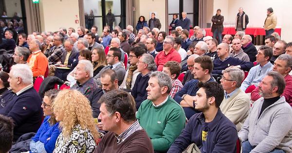 CREMONA - Si è nel tardo pomeriggio di mercoledì 2 dicembre, al Palace Hotel, l’ultimo della serie di incontri promossi dal Consorzio agrario con i propri soci e clienti per illustrare loro il programma delle attività previste per il periodo invernale e per il prossimo 2016. In apertura di confronto, il presidente Paolo Voltini ha sintetizzato le iniziative prese nei primi mesi della sua gestione relative ad un riassetto organizzativo della struttura, soprattutto in termini di accorpamenti, e che avrebbero già portato a sensibili miglioramenti nella fornitura di servizi a soci e clienti. E’ stato poi presentato il nuovo direttore Pietro Pagliuca e il nuovo staff dirigenziale che ha presentato il nuovo assetto entrando più nel dettaglio organizzativo.