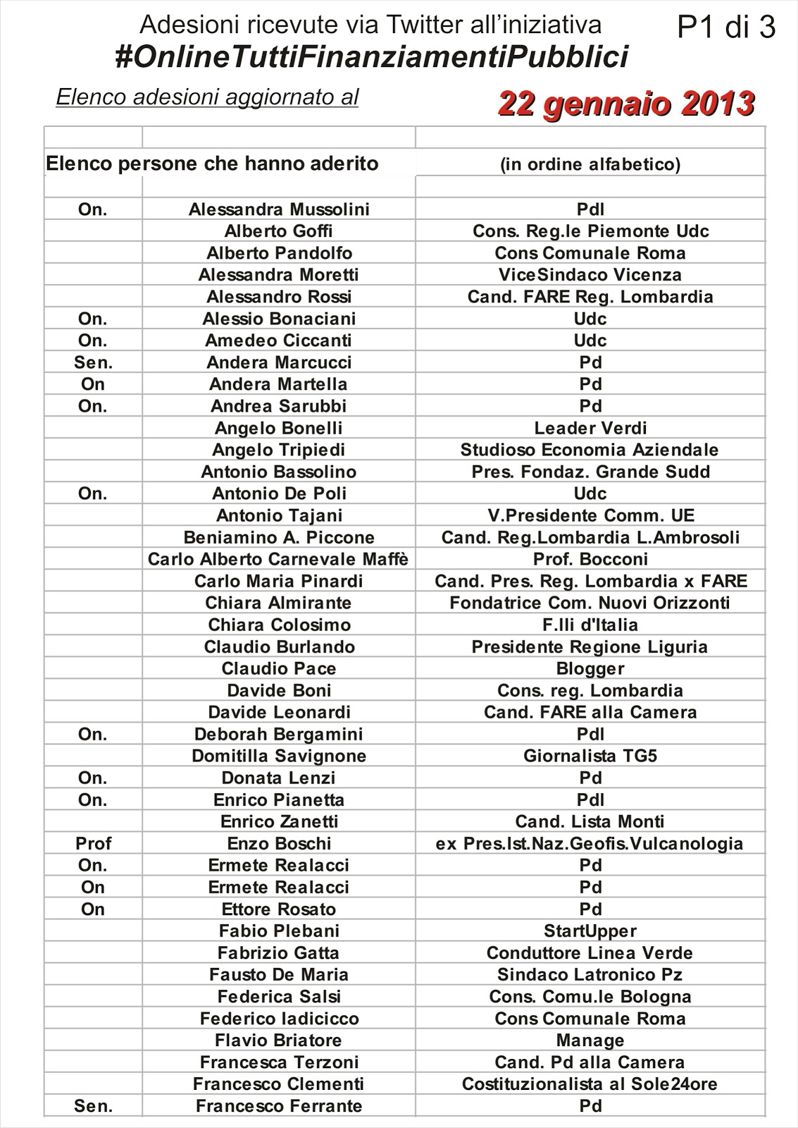 | LE ADESIONI RICEVUTE DA VACCARI VIA TWITTER |