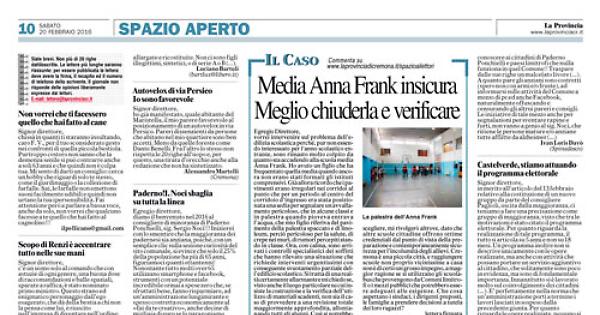 L’ho scritto e lo ripeto: la sicurezza è prioritaria. Se oltre ai solai, l’edificio che ospita la scuola media Anna Frank presenta altri problemi strutturali, si intervenga senza indugio. Questo è il momento per farlo.