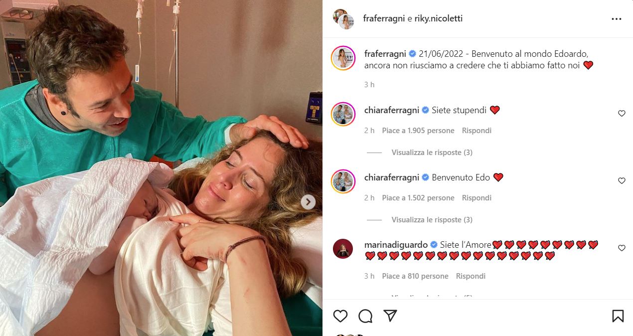 CREMONA - Fiocco azzurro in casa Ferragni. Nelle scorse ore è nato Edoardo, figlio di Francesca Ferragni e di Riccardo Nicoletti. Sono stati i genitori a dare il lieto annuncio su Instagram con tanto di fotografia che li ritrae con il piccolo Edo. Sorella di Chiara Ferragni, Francesca di professione è odontoiatra, specializzata in igiene dentale, nello studio di papà Marco.