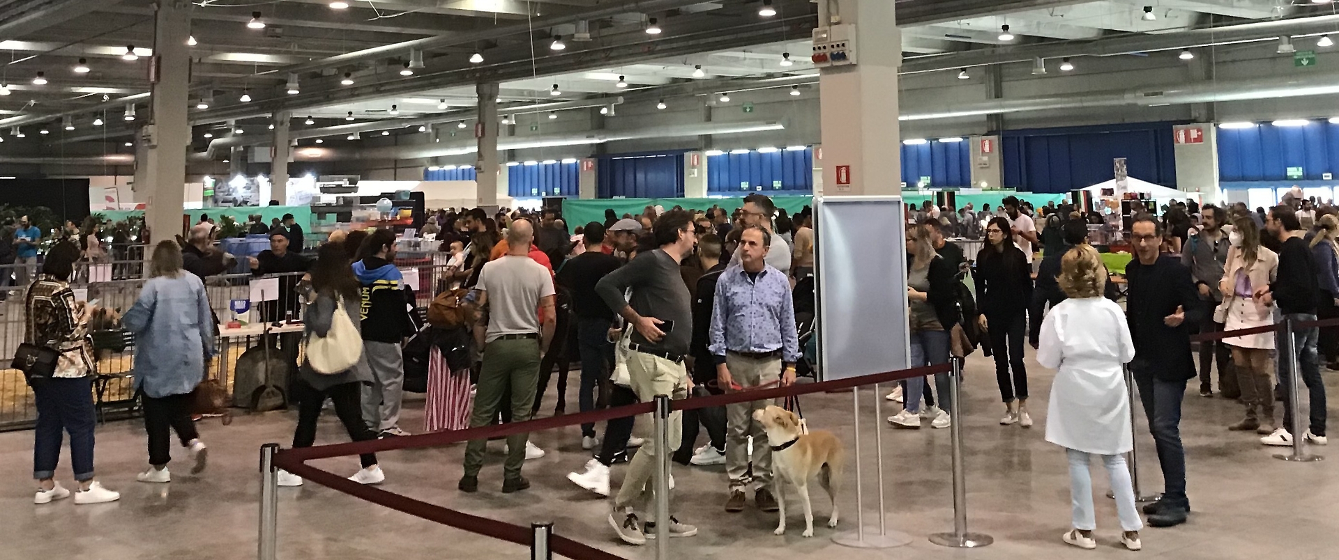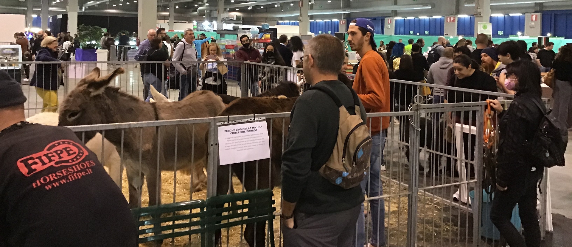 Famiglie in coda all’ingresso, la calca dentro: foto e selfie. Il benvenuto lo danno i colombi. Coccarda al Viaggiatore italiano; 95 il punteggio: «Impressione complessiva molto buona. Petto largo, mantello lucente». Si è preso 92 punti, il Prete di Sassonia. Qualifica: «Buono. Soggetto in stato avanzato di muta di difficile giudizio. Pantofole sviluppate, conchiglia sviluppata». Dal rosso del Prete di Sassonia al verde dei pappagalli parrocchetti. I conigli sono le star. Incuriosiscono roditori e topini bianchi. «Non sono topini, sono i Degu del Cile», corregge il titolare che con i Degu ha viaggiato da Torino. I piccoli roditori giocherellano nella gabbia, mentre non fanno una piega i pitoni accanto. Bisogna essere appassionati di serpenti. «Io muoio», dice una mamma con bimbo scappato dai conigli. Al PetsFestival, cani, gatti & C come le carpe e molti pesci negli acquari. Il recinto della famiglia Perri è preso d’assalto. Dalla cascina di Pieve d’Olmi, Alessandro, 23 anni, papà Daniele (fratello di Oreste, campione di canoa, ex sindaco, presidente Coni Comitato Regione Lombardia), e mamma Fulvia hanno portato i loro asini e pony. Guido, 2 anni, è un asinello che viene dall’Olanda: il mantello nero «è la sua caratteristica rara», racconta Alessandro che degli asinelli dice: «Sono molto intelligenti, più dei cavalli. Capiscono tutto al volo. Una volta a casa mia è arrivato un cane che non era del branco e Achille, l’asino più scuro, non lo voleva tra i piedi». Dai Perri si ripassa l’Odissea, il grande poema epico greco scritto da Omero, perché con Achille ci sono Ulisse e Penelope moglie di Ulisse. «Gli asinelli sono molto affettuosi, instaurano un rapporto umano come i cani», spiega Fulvia.