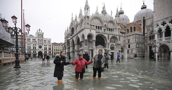 Venezia si appresta a vivere un'altra giornata di paura per la nuova super acqua alta (160 cm) prevista in mattinata: Piazza San Marco è già allagata per quasi 20 centimetri d'acqua. Il cielo è plumbeo, con vento teso, anche se non da scirocco, e non piove. La marea sta crescendo velocemente, come segnalato dalle centraline in mare aperto. Le sirene d'allarme sono risuonate alle 6.50, e poi alle 8.30. A causa della marea anche i vaporetti sono costretti a variazioni di percorso.