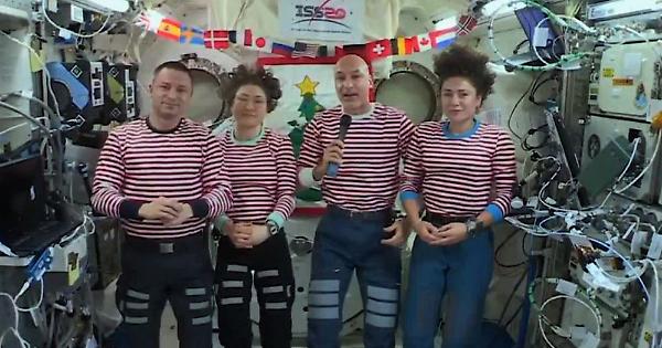Buon Natale dallo spazio: in un video postato su Twitter dalla Nasa l'equipaggio della Stazione Spaziale e il suo comandante Luca Parmitano fanno gli auguri in versione natalizia indossando una maglietta a righe bianche e rosse e con un gran finale con cappellini da Babbo natale, corna di renna con lustrini, capriola e albero di Natale, 24 dicembre 2019. Nel messaggio che accompagna il video, la Nasa scrive che sebbene gli astronauti stiano trascorrendo le vacanze separatamente dalle loro famiglie, hanno lo spirito natalizio.