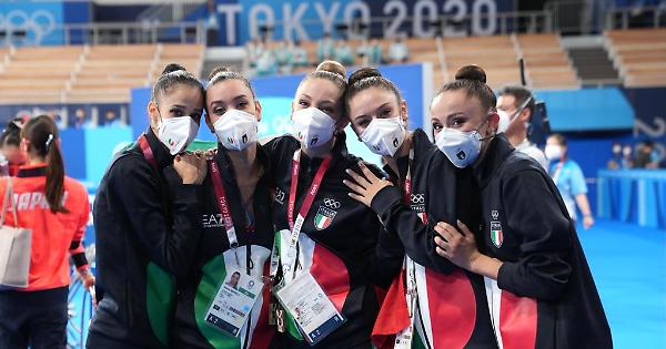 TOKYO (GIAPPONE) - Medaglia numero 40 per l'Italia ai Giochi Olimpici di Tokyo. Le Farfalle hanno vinto il bronzo nell'all around a squadre di ginnastica ritmica con 87.700 punti. L'oro e' andato alla Bulgaria con 92.100, l'argento alla rappresentativa russa con 90.400. "E' un'emozione stupenda, non si può descrivere, siamo talmente contente. Questa medaglia incarna tutti i nostri sacrifici, il sudore e le lacrime degli ultimi cinque anni: è tutto qui dentro" le parole del capitano Alessia Maurelli. "Una finale olimpica è sempre molto combattuta. Dopo le qualifiche di ieri, abbiamo azzerato tutto - ha raccontato la ginnasta - e siamo ripartite. Ci siamo dette di gareggiare con cuore, unione e anima. Questo ci ha guidato dopo la prima rotazione e abbiamo fatto il secondo esercizio meglio che potevamo". Una dedica alla direttrice tecnica dell'Italia, Emanuela Maccarani, anche membro della Giunta del Coni e allenatrice più medagliata di sempre: "Questo bronzo è per lei, la nostra ancora e guida. In questi momenti non ricordi neanche le privazioni e i sacrifici. La ritmica italiana c'è e siamo contenti di aver dato una spinta ulteriore con questa medaglia", ha concluso Maurelli con al fianco le altre compagne di squadre, Martina Centofanti, Agnese Duranti, Martina Santandrea e Daniela Mogurean. . gm/red 08-Ago-21 07:01