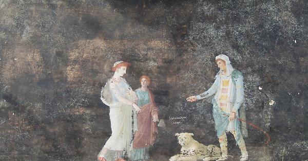 ROMA - Un imponente salone da banchetto, dalle eleganti pareti nere, decorate con soggetti mitologici ispirati alla guerra di Troia, è uno degli ambienti recentemente portati alla luce durante le attività di scavo in corso nell'insula 10 della Regio IX di Pompei e oggi completamente visibile in tutta la sua maestosità. Un ambiente raffinato nel quale intrattenersi in momenti conviviali, tra banchetti e conversazioni, in cui si respirava l'alto tenore di vita testimoniato dall'ampiezza dello spazio, dalla presenza di affreschi e mosaici databili al III stile, dalla qualità artistica delle pitture e dalla scelta dei soggetti. Il tema dominante sembra essere quello dell'eroismo, per le raffigurazioni di coppie di eroi e divinità della guerra di Troia, ma anche del fato e al tempo stesso della possibilità, sovente non afferrata, che l'uomo ha di poter cambiare il proprio destino. Oltre a Elena e Paride, indicato in un'iscrizione greca tra le due figure con il suo altro nome "Alexandros", appare sulle pareti del salone la figura di Cassandra, figlia di Priamo, in coppia con Apollo. Nella mitologia greca Cassandra era conosciuta per il suo dono di preveggenza e per il terribile destino che le impedisce di modificare il futuro. Nonostante la sua capacità di vedere oltre il presente, nessuno crede alle sue parole, a causa di una maledizione che Apollo le infligge per non essersi concessa a lui, e dunque non riuscirà a impedire i tragici eventi della guerra di Troia, che aveva predetto. Dopo essere stata stuprata durante la presa di Troia, finirà come schiava di Agamennone a Micene. La presenza frequente di figure mitologiche nelle pitture di ambienti di soggiorno e conviviali delle case romane aveva proprio la funzione sociale di intrattenere gli ospiti e i commensali, fornendo spunti di conversazione e riflessione sull'esistenza. "Pompei è davvero uno scrigno di tesori che non finisce mai di sorprenderci e di destare stupore perché, ogni volta che scaviamo, troviamo qualcosa di bello e di significativo. Noi crediamo in questo unicum mondiale che rappresenta Pompei e per questo in legge di Bilancio abbiamo finanziato nuovi scavi. Bisogna andare avanti nella tutela di questo importante sito ma anche nella sua valorizzazione", dichiara il Ministro della Cultura, Gennaro Sangiuliano. "Lo scavo nella Regio IX, progettato nell'ambito del Grande Progetto Pompei e portato avanti sotto la direzione Zuchtriegel, è la dimostrazione di quanto uno scavo ben fatto nella città vesuviana possa continuare ad accrescere la conoscenza di uno dei luoghi più importanti che ci sia pervenuto dall'antichità. Nuove ed inedite pitture, nuovi dati sull'enorme cantiere che era Pompei al momento dell'eruzione, nuove scoperte sull'economia e sulle forme di produzione. Una messe straordinaria di dati che sta cambiando l'immagine codificata finora della città antica. Un plauso a tutta la squadra interdisciplinare che con passione e professionalità sta portando avanti le ricerche", afferma il Direttore generale Musei, Massimo Osanna. "Le pareti erano nere per evitare che si vedesse il fumo delle lucerne sui muri. Qui ci si riuniva per banchettare dopo il tramonto, la luce tremolante delle lucerne faceva sì che le immagini sembrassero muoversi, specie dopo qualche bicchiere di buon vino campano - sottolinea il Direttore del Parco Archeologico di Pompei, Gabriel Zuchtriegel - Le coppie mitiche erano spunti per parlare del passato e della vita, solo apparentemente di carattere meramente amoroso. In realtà, parlano del rapporto tra individuo e destino: Cassandra che può vedere il futuro ma nessuno le crede, Apollo che si schiera con i troiani contro gli invasori greci, ma pur essendo un Dio non riesce ad assicurare la vittoria, Elena e Paride che con il loro amore politicamente scorretto sono la causa della guerra, o forse solo un pretesto, chi sa. Oggi, Elena e Paride siamo tutti noi: ogni giorno possiamo scegliere se curarci solo della nostra vita intima o di indagare come questa nostra vita si intrecci con la grande storia, pensando per esempio, oltre a guerre e politica, all'ambiente, ma anche al clima umano che stiamo creando nella nostra società, comunicando con gli altri dal vivo e sui social". Il salone misura circa 15 metri di lunghezza per 6 di larghezza e si apre in un cortile che sembra essere un disimpegno di servizio, a cielo aperto, con una lunga scala che porta al primo piano, priva di decorazione. Sotto gli archi della scala è stato riscontrato un enorme cumulo di materiale di cantiere accantonato. Qualcuno aveva disegnato a carboncino sull'intonaco grezzo delle arcate del grande scalone, due coppie di gladiatori e quello che sembra un enorme fallo stilizzato. L'attività di scavo nell'insula 10 della Regio IX è parte di un più ampio progetto di messa in sicurezza del fronte perimetrale tra l'area scavata e non, di miglioramento dell'assetto idrogeologico, finalizzato a rendere la tutela del vasto patrimonio pompeiano (più di 13mila ambienti in 1070 unità abitative, oltre agli spazi pubblici e sacri) più efficace e sostenibile. Lo scavo nell'area finora ha restituito due abitazioni collegate tra di loro, casa con panificio e fullonica (lavanderia), che prospettavano su via Nola e le cui facciate furono già portate alla luce alla fine del '800. Alle spalle di queste due case, stanno emergendo in questa fase di scavo sontuosi ambienti di soggiorno affrescati, anche in questo caso interessati al momento dell'eruzione da importanti interventi di ristrutturazione. foto: ufficio stampa Ministero Cultura . tvi/com 11-Apr-24 11:38