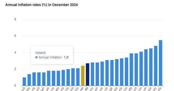 ROMA - A dicembre, secondo i dati Eurostat, il tasso di inflazione annuale dell'area euro è stato del 2,4%, in aumento rispetto al 2,2% di novembre. Un anno prima, il tasso era del 2,9%. L'inflazione annuale dell'Unione europea è stata del 2,7% a dicembre 2024, in aumento rispetto al 2,5% di novembre. Un anno prima, il tasso era del 3,4%. Secondo l'ufficio statistico dell'Unione europea, i tassi annuali più bassi sono stati registrati in Irlanda (1,0%), Italia (1,4%), Lussemburgo , Finlandia e Svezia (tutti 1,6%). I tassi annuali più alti sono stati registrati in Romania (5,5%), Ungheria (4,8%) e Croazia (4,5%). Rispetto a novembre 2024, l'inflazione annuale è diminuita in sette Stati membri, è rimasta stabile in uno ed è aumentata in diciannove. A dicembre 2024, il contributo più elevato al tasso di inflazione annuale dell'area dell'euro è derivato dai servizi (+1,78%), seguiti da prodotti alimentari, alcolici e tabacco (+0,51%), beni industriali non energetici (+0,13%) ed energia (+0,01%). "Ecco quanto certifica Eurostat. A dicembre il tasso d'inflazione in Italia è nettamente più basso della media europea e anche di quello di Francia, Germania e Spagna. Siamo sulla strada giusta", commenta su X il ministro delle Imprese e del made in Italy, Adolfo Urso. . -Foto: ufficio stampa Eurostat- ads/com 17-Gen-25 12:30