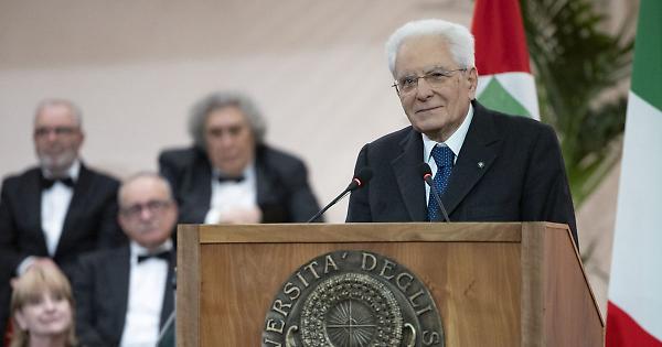 LECCE - "Quella dei 70 anni dell'ateneo è una ricorrenza importante e vorrei collegare i due momenti, di allora e di oggi. Collegare il momento di nascita dell'ateneo con quello di oggi, 70 anni fa la nascita, negli anni '50, con l'Italia ancora in difficoltà dopo la devastazione della guerra, va ricordato il grande impegno lungimirante dei cittadini, di coloro che hanno immaginato, proposto, assecondato, nel popolo del Salento, la decisione di investire sulla cultura, non soltanto come elemento di crescita sociale, di piena cittadinanza di ciascuno ma anche come motore di sviluppo del territorio". Lo ha detto il presidente della Repubblica, Sergio Mattarella, intervenendo alla cerimonia di inaugurazione del 70° anno accademico dell'Università del Salento, a Lecce. "È stato quello un momento di meridionalismo adulto, protagonista - ha aggiunto il capo dello Stato -, che ha portato al momento di oggi. L'ateneo continua a promuovere, ad accompagnare questo sviluppo, e in questo momento storico, come le altre università del Paese, offre l'opportunità di dare una risposta alla ricerca di nuovi assetti nelle condizioni che mutano, mutamenti così profondi, veloci, radicali, dall'intelligenza artificiale ai grandi strumenti di comunicazione e connessione". Per il presidente della Repubblica "adesso nuovi equilibri vanno trovati attraverso la cultura. Si tratta di stimolare la ricerca, la trasmissione del sapere, nel collegamento delle varie discipline, ponendo sempre al centro la persona umana. Vi è una esigenza di richiamare, in questi cambiamenti così radicali e profondi, la centralità della persona, i suoi diritti, la sua libertà. Richiamare questo che in realtà è il centro, il perno, della civiltà europea. La persona al centro, il dialogo, il rispetto reciproco, il confronto". - Foto ufficio stampa Quirinale - . xc3/sat/red 17-Gen-25 14:23