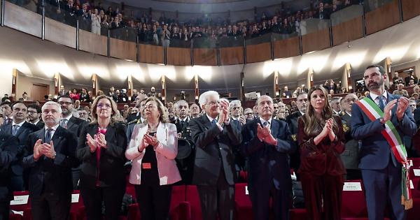 MESSINA - L'Università degli Studi di Messina ha conferito al Presidente della Repubblica, Sergio Mattarella, il Dottorato honoris causa in Scienze delle Pubbliche Amministrazioni, in occasione della cerimonia di inaugurazione dell'anno accademico 2024/2025 dell'Ateneo, che si è svolta al Teatro Vittorio Emanuele. Nel corso della cerimonia sono intervenuti la Rettrice dell'Università, Giovanna Spatari, Domenico Quartarone, Rappresentante del personale tecnico - amministrativo e Chiara Furlan, Rappresentante degli studenti. La laudatio honoris causa è stata svolta da Gaetano Silvestri, Presidente emerito della Corte Costituzionale e Professore emerito di Diritto costituzionale dell'Università degli Studi di Messina. La consegna al Presidente Mattarella del diploma di Dottorato honoris causa e del sigillo dell'Ateneo è stata preceduta dalla lettura delle motivazioni del conferimento da parte Daniela Novarese, Coordinatrice del Corso di Dottorato in Scienze delle Pubbliche Amministrazioni e dalla proclamatio doctoralis honoris causa da parte della Rettrice dell'Ateneo. La cerimonia si è conclusa con la Lectio doctoralis del Presidente della Repubblica. - foto ufficio stampa Quirinale - . vbo/com 22-Gen-25 12:54