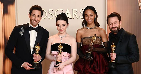 ROMA - È "Anora" il trionfatore della 97esima edizione degli Oscar: già premiato con la Palma d'Oro al Festival di Cannes, il film che racconta la storia di una giovane spogliarellista che sposa il figlio di un oligarca russo ha vinto anche per la migliore regia, sceneggiatura originale, attrice protagonista e montaggio. Il regista Sean Baker - che in una sola serata ha vinto quattro premi, equiparando Walt Disney (che li vinse per quattro film diversi) - ha ricordato l'importanza delle sale cinematografiche e ha ringraziato le sex workers che "hanno condiviso con me le loro storie, la loro esperienza di vita per anni. A loro va il mio più profondo rispetto". Alla protagonista, Mikey Madison, è andata la statuetta per la migliore attrice: beffata Demi Moore, candidata per "The Substance" e favorita della vigilia per il suo primo Oscar. Flop per "Emilia Perez": dopo il boom di nomination, ben 13, la pellicola di Jacques Audiard, grande favorita fino a poche settimane fa, è stata aspramente criticata dalla comunità messicana, per essere poi travolta dalle polemiche per alcuni vecchi tweet razzisti della protagonista, l'attrice trans spagnola Karla Sofia Gascon, presente alla cerimonia (dopo aver saltato il red carpet) ma seduta lontano dal cast. Nonostante le quotazioni del film in picchiata, Zoe Saldana ha ottenuto la statuetta come miglior attrice non protagonista, categoria in cui era candidata anche Isabella Rossellini per "Conclave", il film sull'elezione del Papa che si è portato a casa il premio per la miglior sceneggiatura non originale a Peter Straughan, sul palco con una spilla con i colori dell'Ucraina (l'altro omaggio della serata è stato lo 'Slava Ukraine' pronunciato da Daryl Hannah prima di annunciare la vittoria di Sean Baker per il miglior montaggio di "Anora"). A mani vuote "A Complete Unknown", il biopic sulla vita di Bob Dylan, interpretato da Timothée Chalamet, che era candidato a miglior attore, premio andato invece ad Adrien Brody per "The Brutalist", dopo l'Oscar vinto nel 2003 per "Il Pianista". Quello per il miglior attore non protagonista è andato a Kieran Culkin ("A Real Pain"), che dal palco ha ringraziato la moglie, ricordandole che gli aveva promesso quattro figli se avesse vinto la prestigiosa statuetta. L'Oscar per il miglior documentario è andato a "No Other Land" diretto, prodotto, scritto e montato da un collettivo israelo-palestinese, mentre il premio per il miglior film straniero è stato vinto da "Io sono ancora qui" di Walter Salles: è la prima volta nella storia che un film brasiliano viene premiato dall'Academy. Una prima volta importante anche per la Lettonia, con la statuetta per il miglior film di animazione a "Flow" di Gints Zilbalodis, Matiss Kaza, Ron Dyens e Gregory Zalcman. È "In the Shadow of the Cypress" il miglior corto d'animazione, mentre l'Oscar per la migliore scenografia è andato a Nathan Crowley e Lee Sandales per "Wicked", che trionfa anche per i migliori costumi, con Paul Tazewell che ha ricordato dal palco di essere il "primo uomo nero a vincere questo premio". Quello per il miglior trucco va a Pierre-Olivier Persin, Stéphanie Guillon e Marilyne Scarselli per "The Substance", mentre la statuetta alla miglior fotografia, consegnata da Alba Rohrwacher, va a Lol Crawley per "The Brutalist". -foto Ipa Agency - . xi2/mgg/red 03-Mar-25 08:29