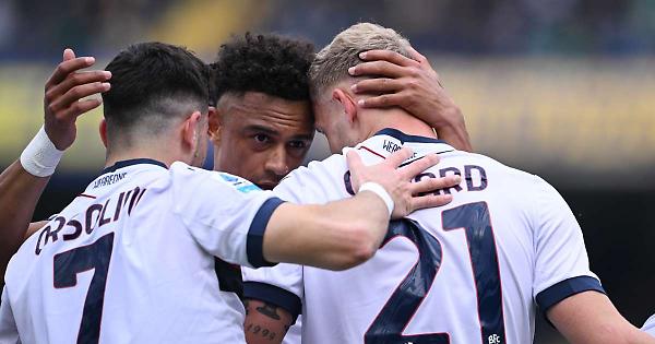 VERONA - Il Bologna continua la sua marcia verso l'Europa ed espugna 2-1 anche il Bentegodi di Verona, centrando la sua terza vittoria consecutiva nel match valevole per la 28esima giornata di campionato: decidono le reti di Jens Odgaard e Nicolò Cambiaghi. La formazione ospite parte subito forte, andando alla conclusione dopo appena due minuti con Odgaard che però non inquadra lo specchio della porta. I gialloblù hanno un atteggiamento più cauto e scelgono di attendere il momento giusto per provare a colpire gli avversari. A fare la partita, però, sono sempre gli uomini di Vincenzo Italiano: al 23' Moro tenta un inserimento nell'area di rigore veneta, ma Dawidowicz è attento e sventa la minaccia. Al 28' i padroni di casa protestano per un presunto rigore in seguito ad un intervento di Ferguson, che viene giudicato regolare da arbitro e Var. Tre minuti più tardi Sarr salta Calabria e va al tiro, ma trova soltanto l'esterno della rete. L'Hellas è in crescita e al 38' ha una grande occasione con Sarr che, dopo un errore di Calabria, si fa anticipare da Skorupski. Nel momento migliore degli scaligeri, è il Bologna a passare in vantaggio al 40' grazie alla rete realizzata da Odgaard: il danese riceve un bel pallone da Calabria e batte Montipò con il mancino. A pochi secondi dall'intervallo Orsolini ruba palla a Valentini e si invola verso la porta, ma poi incespica sul pallone. In apertura di ripresa Odgaard sfiora il raddoppio, ma trova la pronta risposta di Montipò che salva i suoi. I ragazzi di Italiano continuano a spingere rendendosi pericolosi in più frangenti, prima con Orsolini e poi con Aebischer, ma Montipò non si fa sorprendere. Al 61' i veneti acciuffano il pareggio con il neo-entrato Tengstedt, ma la marcatura viene annullata dal Var per il fuorigioco del danese. Al 71' Valentini commette una grave ingenuità su Ndoye e viene espulso per doppio giallo, lasciando i suoi in dieci. I rossoblù sfruttano il momento positivo e al 78' firmano il raddoppio con Cambiaghi che, su assist di Dominguez, fa 2-0 approfittando di un'incertezza di Montipò. Neanche il tempo di gioire per gli emiliani, che all'80' ci pensa Daniel Mosquera a riaprire la contesa, capitalizzando al massimo il suggerimento di Tengstedt: il gol viene convalidato dopo un check del Var. Nel finale gli uomini di Zanetti tentano il tutto per tutto, ma sono ancora i rossoblù ad andare più vicini al gol con Dallinga. Al Bentegodi termina 1-2 in favore degli emiliani. In virtù del suo terzo successo consecutivo il Bologna aggancia la Lazio al quinto posto in classifica salendo a 50 punti, mentre il Verona resta 14esimo a quota 26. Nel prossimo turno i felsinei ospiteranno proprio la Lazio domenica al Dall'Ara, mentre gli scaligeri saranno impegnati sabato nella trasferta di Udine. - Foto Image - . xq6/mc/red 09-Mar-25 14:37