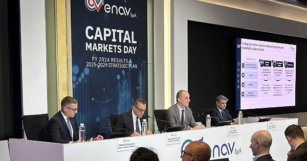 MILANO - Un piano di investimenti da 570 milioni di euro basato su tre principali linee guida strategiche: evoluzione del mercato regolato con potenziamento di infrastrutture e implementazione di tecnologie avanzate per il controllo del traffico aereo; innovazione e sostenibilità; espansione del mercato terzo con ampliamento dell'offerta di prodotti e servizi digitali, nuovi mercati e sviluppo nuovo business. Sono questi i punti principali del piano industriale 2025-2029 di ENAV presentato oggi a Milano nell'ambito del Capital Markets Day con gli analisti e gli investitori. Nelle parole dell'Amministratore Delegato di ENAV Pasqualino Monti, "si tratta di un piano importante che darà grandi soddisfazioni al nostro gruppo". Come illustrato in conferenza stampa, gli investimenti programmati al 2029 prevedono la modernizzazione delle infrastrutture di controllo del traffico aereo, nuove piattaforme digitali per la gestione del traffico aereo, ICT e sistemi operativi con soluzioni orientate al cloud e all'intelligenza artificiale. Il piano industriale arriva al termine di un anno positivo per il gruppo. Come testimonianti dal bilancio consolidato del gruppo presentato nella stessa occasione, nel 2024 ENAV ha gestito nello spazio aereo italiano oltre 2,2 milioni di voli con un aumento delle unità di servizio del 10,5% rispetto al 2023. Sempre nel 2024 l'utile netto consolidato è stato pari a 125,7 milioni di euro, un dividendo di 0,27 euro per azione, un EBITDA consolidato a 310,9 milioni di euro e ricavi consolidati a 1,037 miliardi di euro. Sul fronte del mercato terzo, il piano industriale prevede l'espansione geografica con l'apertura entro il 2026 di tre sedi in India, Brasile e Arabia Saudita; l'avviamento di una "Energy Service Company" per offrire servizi di efficientemento energetico, lo sviluppo di un ecosistema di servizi avanzati mediante droni e la creazione di una digital academy. E proprio sul settore dei droni, l'AD ha dichiarato di prevedere ricavi da "10 milioni al 2029. Siamo però convinti che sia un numero sottostimato rispetto a quelli che saranno i risultati della nostra azienda. Noi crediamo molto nelle potenzialità di questo settore: abbiamo lavorato per essere i primi ad essere certificati io come regolatore sia come gestore di servizi nello spazio droni e siamo convinti che da questo settore arriveranno tante soddisfazioni". Per quanto riguarda invece le operazioni di M&A, Monti ha affermato che "le potenziali operazioni saranno interamente finanziate con nuovo debito, sempre nel rispetto del nostro obiettivo di preservare la solidità e la sostenibilità finanziaria. Attualmente siamo in una fase avanzata di negoziazione su alcune operazioni e credo che avrete nostre notizie a breve". Alla domanda sull'espansione internazionale con particolare riferimento alle tre nuove sedi, Monti ha affermato che "sul mercato estero puntiamo tanto perché l'azienda ha un livello di maturazione sulla sua tecnologia, i suoi prodotti e il suo core business davvero straordinario". Con lo scopo finale di "immettere nell'organizzazione aziendale la capacità mentale di chi lavora che non si vive solo di mercato regolato". - foto xh7/Italpress - . xh7/fsc/red 01-Apr-25 19:36