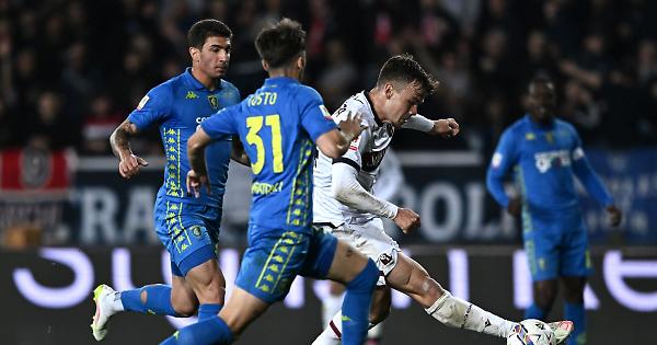 EMPOLI - Il Bologna certifica il suo periodo d'oro e stravince l'andata della semifinale di Coppa Italia, imponendosi sul campo dell'Empoli con un netto 3-0. Sono la rete di Orsolini e la doppietta di Dallinga a indirizzare la qualificazione verso la squadra di Italiano, ormai a un passo dalla finale di Roma. Dopo poco più di un minuto, gli ospiti sciupano subito una grande occasione. Dallinga recupera palla in mezzo al campo e lancia Orsolini, che salta secco Tosto e va al tiro con il destro, ma la palla esce di poco. Il numero 7 è in forma smagliante e al 23' si fa perdonare, portando in vantaggio i suoi. Odgaard crossa dalla sinistra e la palla rimbalza in area dopo il mancato intervento di Dallinga e Tosto, con Orsolini che arriva in corsa e trafigge Seghetti con il mancino. Il 2-0 arriva appena sei minuti più tardi. Dalla sinistra, Ndoye serve al centro Dallinga che controlla e beffa Seghetti con un pregevole esterno destro che si infila nell'angolino lontano. Il primo squillo dei toscani arriva al 39', quando Skorupski devia in corner, poi non assegnato dall'arbitro, un mancino ravvicinato di Solbakken arrivato in seguito a una sponda aerea di Colombo. Sarà l'ultima emozione del primo tempo. Il dominio emiliano prosegue al 6' della ripresa, quando arriva il tris. Odgaard verticalizza per Ndoye, che dalla sinistra brucia De Sciglio e serve al centro Dallinga, che in scivolata firma la doppietta personale e il 3-0. La partita, di fatto, finisce qui. Al 16', Gyasi ha un'ottima opportunità per accorciare le distanze, ma il suo sinistro ravvicinato termina a lato, vanificando così un assist di Colombo. Al 23' ci vuole un intervento di Seghetti per fermare un sinistro insidioso del solito Orsolini. Il portiere si ripete al 36', quando alza sopra la traversa il mancino di Miranda. Quattro minuti dopo è Ferguson ad andare vicino al poker con un piatto destro dal limite che si spegne fuori di pochi centimetri alla destra del palo. Nel finale c'è ancora tempo di vedere un palo colpito dal neo entrato Cambiaghi da posizione piuttosto defilata. Sarà l'ultima occasione del match, che si chiude sul 3-0 in favore dei rossoblù. Giovedì 24 aprile, le due squadre torneranno ad affrontarsi a campi invertiti per la gara di ritorno, ma il verdetto sembra già acquisito e colorato di rossoblù. - Foto Image - . xh9/ari/red 01-Apr-25 22:57