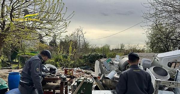 PADOVA - La Guardia di Finanza di Padova, nell'ambito di un'attività di polizia ambientale condotta in collaborazione con militari del Reparto Operativo Aeronavale del Corpo, hanno sequestrato un'area di circa 2 mila mq adibita a discarica di rifiuti speciali classificati come pericolosi e non. In particolare, grazie ai sofisticati strumenti di bordo in dotazione al velivolo, presso un terreno nel comune di San Giorgio delle Pertiche (PD) veniva individuata la presenza di un'ingente quantità di rifiuti in evidente stato di abbandono. I successivi riscontri, grazie ad una mirata attività di intelligence, permettevano di accertare l'esercizio non autorizzato di un'abituale attività di gestione dei rifiuti speciali pericolosi e non, in assenza della prevista iscrizione al Catasto Nazionale dei Rifiuti ad opera di un soggetto titolare, fino al 2024, di partita I.V.A. operante nel settore delle confezioni varie per l'abbigliamento. In ragione dei potenziali rischi per la salute derivanti dall'abbandono dei materiali rinvenuti, tra i quali bombole di gas, batterie esauste, estintori, elettrodomestici, le Fiamme Gialle hanno proceduto al sequestro dell'intera area, deferendo alla Procura della Repubblica di Padova il responsabile per le ipotesi di reato di gestione di rifiuti non autorizzata, punita dalle leggi del Testo Unico Ambientale, di violazione dei sigilli posti dai militari a tutela dell'area sequestrata e di oltraggio a pubblico ufficiale. - Foto: ufficio stampa Guardia di Finanza - . pc/com 17-Apr-25 08:32