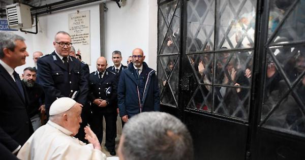 ROMA - Nel pomeriggio, poco prima delle 15, Papa Francesco si è recato in visita alla Casa Circondariale di Regina Coeli. Lo rende noto la Sala stampa della Santa Sede. Accolto dal Direttore del Carcere, Claudia Clementi, e dal personale, il Santo Padre ha raggiunto la Rotonda principale, dove ha incontrato circa 70 detenuti, di varie nazionalità, che partecipano regolarmente alle attività e alle catechesi organizzate dal Cappellano dell'Istituto. Dopo un breve saluto da parte del Direttore, che ha espresso la gratitudine dell'intera comunità per la visita, Papa Francesco ha espresso il suo desiderio di essere presente tra i detenuti: "A me piace fare tutti gli anni quello che ha fatto Gesù il Giovedì Santo, la lavanda dei piedi, in carcere". E ha aggiunto: "Quest'anno non posso farlo, ma posso e voglio essere vicino a voi. Prego per voi e per le vostre famiglie". Al termine di un momento di preghiera, il Papa ha salutato individualmente ciascuno dei detenuti nella Rotonda. Infine, ha rivolto nuovamente la parola ai presenti per pregare insieme il Padre Nostro e impartire loro la sua benedizione. La visita è durata circa 30 minuti. - foto Copyright: Vatican Media - . vbo/com 17-Apr-25 17:28