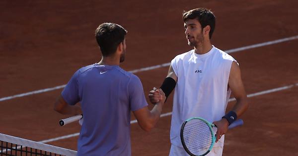 ROMA - Lorenzo Musetti si ferma in semifinale agli Internazionali d'Italia di tennis, il torneo Atp Masters 1000 in scena a Roma, al Foro Italico. Il toscano, numero nove del mondo e otto del seeding, cede in due set di fronte allo spagnolo Carlos Alcaraz, terzo nel ranking Atp e numero tre del tabellone, col punteggio di 6-3 7-6(4), in poco più di due ore di gioco. Domenica in finale Alcaraz sfiderà il vincente della sfida tra l'azzurro Jannik Sinner e lo statunitense Tommy Paul. Musetti esce dunque di scena dopo un grande torneo disputato nella Capitale. L'italiano è apparso durante la sfida odierna più nervoso del solito, infastidito dalle condizioni climatiche. Raggiante a fine match invece Alcaraz. "Oggi le possibilità e le varianti di gioco erano molto complicate: il vento ha condizionato la partita. Sono contento di come ho gestito il tutto e di essere riuscito a portare a casa il match. Sono stato più concreto e sono riuscito a fare la differenza nei momenti importanti", ha affermato lo spagnolo. - foto Ipa Agency - . xn9/pdm/red 16-Mag-25 18:05