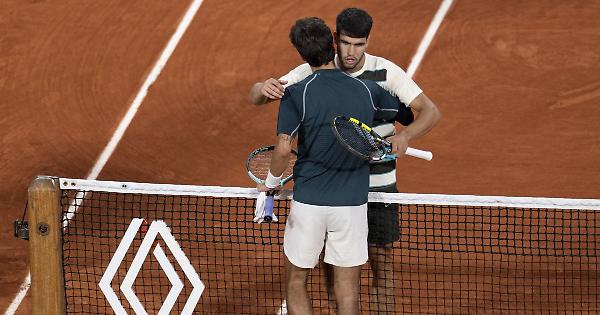PARIGI (FRANCIA) - Lorenzo Musetti lotta alla pari con Carlos Alcaraz per due set ma poi un problema muscolare lo costringe a gettare la spugna. Si ferma in semifinale lo splendido cammino del 23enne carrarino al Roland Garros: un infortunio alla coscia sinistra lo porta al ritiro sul 4-6 7-6(3) 6-0 2-0 dopo due ore e 25 minuti di gioco a favore dello spagnolo. Alcaraz, campione in carica, vola dunque in finale dove attende il vincitore del match fra Jannik Sinner e Novak Djokovic. Per il 22enne murciano è la quinta finale in uno Slam: fin qui solo vittorie, agli Us Open 2022, a Wimbledon nel 2023 e nel 2024 e, come detto, al Roland Garros un anno fa. "Vincere così non è piacevole - il commento di Alcaraz - Lorenzo ha disputato una stagione su terra fantastica, gli auguro il meglio: spero che possa recuperare in fretta per tornare a goderci il suo tennis". Lo spagnolo ammette che "i primi due set sono stati durissimi. Potevo fargli break nel primo e non sono riuscito a sfruttare le mie occasioni. Lui stava giocando un gran tennis e aver vinto il secondo set è stato un sollievo. Dovevo spingerlo al limite, essere aggressivo. Ho trovato un po' di calma, ho iniziato a vedere le cose in maniera più chiara e ho giocato un buonissimo tennis. Sto alla grande, sono state delle settimane intense ma c'è ancora un passo da fare e tutto quello che ho ancora da dare, lo darò domenica", il riferimento alla finale. - foto Ipa Agency - . glb/red 06-Giu-25 17:31