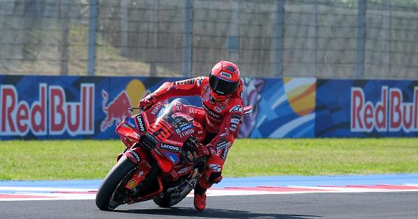 RIMINI - Marc Marquez (Ducati) si è piazzato davanti a tutti nella sessione di Practice di Moto GP del Gran Premio di San Marino e della Riviera di Rimini, sedicesimo appuntamento del Mondiale, in scena lungo il tracciato del Misano World Circuit Marco Simoncelli. 1'30"480 il tempo del pilota spagnolo, leader indiscusso del campionato iridato, che si è messo alle spalle tre italiani: nell'ordine Marco Bezzecchi (Aprilia), Franco Morbidelli (Ducati VR46) e Pecco Bagnaia (Ducati). Direttamente in Q2 anche Alex Marquez (Ducati Gresini), Joan Mir (Honda), Luca Marini (Honda), Jorge Martin (Aprilia), Pedro Acosta (Ktm) e Fabio Di Giannantonio (Ducati VR46). Dovranno passare dal Q1 invece Fabio Quartararo (Yamaha) ed Enea Bastianini (Ktm Tech3). Domani appuntamento alle 10.10 per le seconde Practice e alle 10.50 per le qualifiche. Poi alle 15 la Sprint, su 13 giri del circuito romagnolo. - foto Ipa Agency - . spf/pdm/red 12-Set-25 16:31