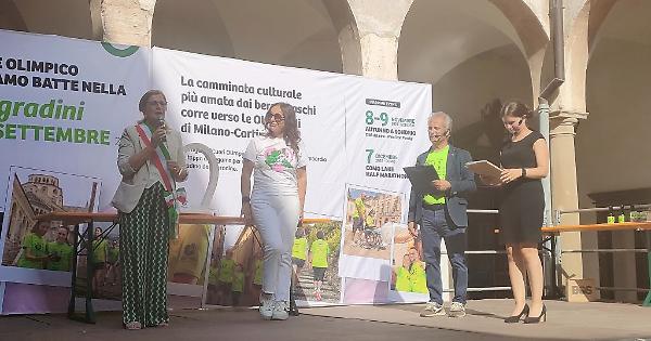 BERGAMO - La decima tappa del progetto di Regione Lombardia "Il Cuore dei Giochi Olimpici e Paralimpici Invernali Milano - Cortina 2026", ha avuto come protagonista Bergamo e la sua Millegradini. Durante il weekend del 20 e 21 settembre le strade e i vicoli della città hanno accolto dodicimila persone circa che hanno partecipato a quello che è ormai, appunto, un appuntamento classico. La "Millegradini" di Bergamo, una camminata culturale, sportiva e sociale porta i partecipanti di tutte le età a visitare i luoghi più importanti e iconici della città. L'edizione 2025 ne ha visti protagonisti più di 60, aperti al pubblico gratuitamente. Durante la cerimonia ufficiale di domenica 21, la sindaca di Bergamo, Elena Carnevali, ha ricevuto dalle mani dell'assessore regionale al Turismo, Marketing territoriale e Moda, Barbara Mazzali, il cuore di marmo bianco, simbolo del progetto "Cuori Olimpici". Di provincia in provincia, "Cuori Olimpici", sta portando lo spirito delle Olimpiadi in tutto il territorio regionale, una staffetta che punta a valorizzare le bellezze e il patrimonio culturale di tutta la Lombardia. La tappa bergamasca è stata supportata da BV Tech, Sopra Steria e Top Taglio. "Per Bergamo è un riconoscimento molto importante, ringraziamo quindi la Regione Lombardia per aver scelto la 'Millegradini' come una delle tappe del progetto 'Cuori Olimpici'", ha detto la Sindaca Carnevali. "Mi ha fatto un effetto incredibile - ha detto l'Assessore Mazzali, commentando l'esperienza di percorrere le vie della città e di visitare alcuni dei luoghi parte del percorso - nonostante io Bergamo la conosca benissimo. Tutto quello che ho visto mi sembrava nuovo e questa è la vera dimostrazione di cosa voglia dire camminare con lentezza e riuscire a leggere una città in tutta la sua straordinaria offerta". La "Millegradini" è stata un evento che ha messo l'inclusione al centro con il percorso "Zerogradini" pensato per chi ha difficoltà motorie come anziani, famiglie con passeggini o persone con disabilità. "La Millegradini unisce cultura, sport, natura e inclusione in un'esperienza che parla a tutti e ci ricorda quanto sia prezioso il nostro territorio. Con il Cuore Olimpico poi, Bergamo quest'anno si apre anche a un orizzonte più ampio, diventando parte attiva del cammino verso Milano-Cortina 2026", ha detto ancora Elena Carnevali. Le prossime due tappe del progetto "Il Cuore dei Giochi Olimpici e Paralimpici Invernali Milano - Cortina 2026" saranno il 7 e 8 novembre a Sondrio e il 7 dicembre a Como. - foto f03/Italpress - . f03/fsc/red 23-Set-25 11:15