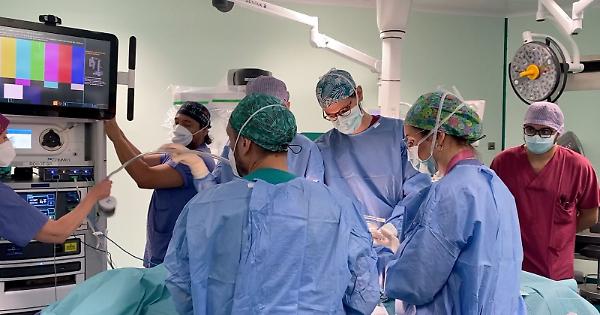 MILANO - L'Unità di Urologia dell'IRCCS Ospedale San Raffaele di Milano è riconosciuta come centro di eccellenza internazionale per la diagnosi e la cura delle principali patologie oncologiche e funzionali dell'apparato uro-genitale. Con oltre 3.500 interventi per tumore al rene e più di 2.000 per tumore alla vescica, l'Unità si distingue per l'esperienza chirurgica e per l'impiego delle tecnologie più avanzate, come i sistemi robotici Da Vinci Xi di ultima generazione. Ogni anno vengono eseguiti più di 700 interventi di chirurgia robotica e oltre 20.000 prestazioni ambulatoriali, con un approccio multidisciplinare che integra attività clinica, ricerca e formazione accademica. La collaborazione con l'Urological Research Institute (URI) consente lo sviluppo di terapie innovative e lo studio di nuove strategie terapeutiche, confermando il ruolo dell'Ospedale San Raffaele come punto di riferimento per pazienti provenienti da tutta Italia e dall'estero. "La grande novità della cura del tumore del rene - spiega all'Italpress Francesco Montorsi, primario di Urologia all'IRCCS Ospedale San Raffaele e ordinario di Urologia all'Università Vita- Salute San Raffaele di Milano - è considerare che non tutti i tumori sono uguali. In base alla caratterizzazione della neoplasia è possibile curarla: pungendola con un ago e cauterizzandola; utilizzando la nuova forma di chirurgia robotica, cosiddetta "single port", che con un unico taglietto permette di asportare selettivamente la lesione; oppure è possibile trattarla avvalendosi di una nuova forma di radioterapia che si chiama stereotassica, una tecnica molto precisa che utilizza fasci di radiazioni ad alta intensità per colpire in modo mirato il tumore risparmiando il più possibile i tessuti sani intorno. Tutte queste metodiche sono già disponibili al San Raffaele di Milano. Innovazione, per il primario di Urologia, è poi quella di lavorare in gruppo, in forma multidisciplinare, unendo l'eccellenza di oncologi, medici e radioterapisti, con i quali viene discusso ogni caso di tumore urologico, con particolare attenzione a quello della vescica. Sulla malattia agli stadi iniziali, si interviene utilizzando dei medicinali estremamente innovativi riducendo drasticamente il rischio. Quando la neoplasia è particolarmente aggressiva l'approccio è invece la combinazione di alcuni nuovi farmaci immunoterapici o chemioterapici ed eventualmente l'intervento chirurgico e la radioterapia. Per il Prof. Montorsi "la comunione delle forze è la grandissima novità per questo tipo di tumore". Infine, il professore sottolinea come la chirurgia mininvasiva abbia cambiato profondamente la vita dei pazienti. In passato gli interventi erano efficaci, ma anche molto invasivi: le incisioni erano grandi e il recupero richiedeva fino a un mese prima di poter tornare alla vita normale e lavorativa. Oggi, invece, grazie alle nuove tecniche, è possibile intervenire con approcci sempre più delicati: dalla tecnica single-port, che utilizza un unico piccolo accesso per effettuare l'intervento, alla tecnica multi-port, che prevede quattro o sei microincisioni. Il paziente "quasi non se ne accorge" - precisa il Primario - e, al tempo stesso, queste modalità permettono al chirurgo di essere estremamente preciso, rispettando i tessuti e gli organi circostanti". Come sottolinea l'esperto, è "un grande passo avanti". Fondamentale anche l'impegno della ricerca clinica, che al San Raffaele si rivolge "proprio al letto del paziente": ogni piccolo progresso viene immediatamente trasferito nella pratica, per migliorare la qualità delle cure mediche e chirurgiche. -foto IRCCS Ospedale San Raffaele - . f28/mgg/red 12-Nov-25 11:13