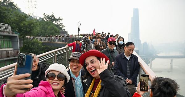 Cina, turisti italiani sperimentano la nuova passerella sospesa di Chongqing