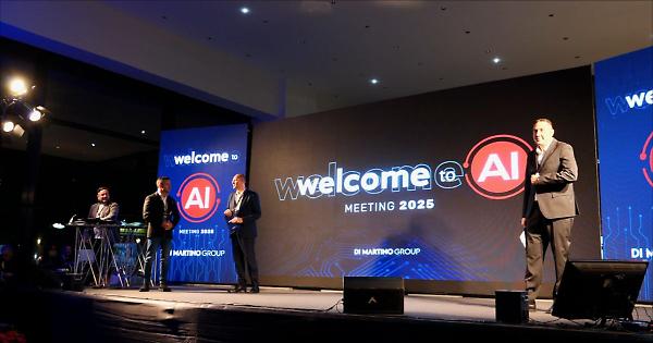 MISTERBIANCO (CATANIA) - Si è svolto sabato 29 novembre, presso la nuova sede Comer Sud di Misterbianco (Catania), il meeting europeo del Gruppo Di Martino dal titolo "Welcome to AI". Un evento che ha riunito oltre 1000 collaboratori provenienti da tutta Italia, Svezia, Spagna, Grecia e Maghreb, segnando un passaggio chiave nel percorso evolutivo del Gruppo verso l'integrazione dell'Intelligenza Artificiale nei processi aziendali. Il Meeting si è svolto nella nuova struttura di oltre 17.000 mq, che accoglierà i nuovi showroom Mercedes-Benz, Nissan e il comparto usato Luxury, insieme alla nuova officina multibrand da 2.500 mq con 26 ponti di lavoro. "Un polo tecnologico e commerciale che ridisegna il concetto di concessionaria del futuro, ponendo la nuova sede catanese al centro dell'evoluzione del settore automotive in Italia", si legge in una nota. Sul palco il conduttore televisivo e Team Manager del Gruppo Cristiano Di Stefano assieme a Davide e Fabio Di Martino, Consiglieri Delegati dell'omonimo Gruppo, che hanno introdotto gli obiettivi strategici legati alla digital transformation: investimenti in AI, formazione del personale e integrazione dei nuovi strumenti intelligenti nei processi di vendita, assistenza e comunicazione. Ospite d'eccezione della serata è stato Jacopo Perfetti, esperto di Intelligenza Artificiale generativa e voce autorevole nel panorama europeo, che ha approfondito il tema dell'AI applicata al mondo aziendale e produttivo, illustrando scenari, potenzialità e impatti concreti nei flussi operativi. Grande attenzione anche al coinvolgimento diretto dei partecipanti: gli ospiti hanno potuto interagire con l'AI in tempo reale attraverso postazioni digitali e call to action dal palco, modificando contenuti foto e video tramite smartphone e terminali dedicati. Un'esperienza esperienziale, immersiva e formativa, in pieno stile Gruppo Di Martino che è stata allietata anche dalla presenza di un cane robot dotato di AI che ha intrattenuto i partecipanti con la sua personalità. Durante la serata è stato infine presentato "Ciccio", un consulente vendita digitale del Gruppo, progettato internamente dal reparto IT per supportare clienti e consulenti nelle attività di vendita Comer Sud. Un passo simbolico e concreto verso la trasformazione delle risorse tecnologiche in elementi attivi della quotidianità aziendale. Il meeting si è concluso con l'intervento del Presidente Angelo Di Martino, che ha ringraziato tutti i presenti definendo l'evento "un punto di incontro tra persone, competenze e futuro" e sottolineando come l'AI rappresenti un'opportunità di crescita condivisa, non solo un cambiamento tecnologico. - News in collaborazione con gruppo Di Martino - - Foto Italpress - . sat/com 01-Dic-25 19:26