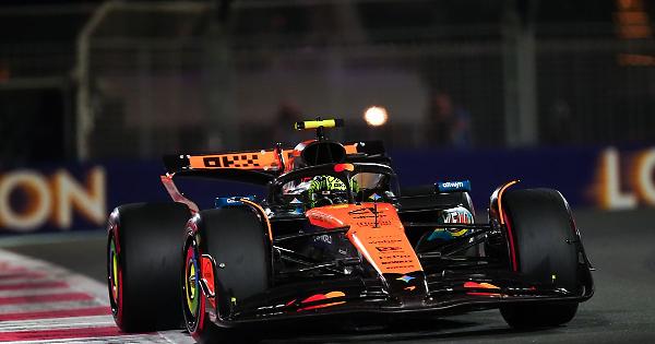 ROMA - Lando Norris completa il suo venerdì perfetto nel weekend del Gran Premio di Abu Dhabi 2025 di Formula 1, che porterà all'assegnazione del titolo iridato piloti. Il britannico della McLaren, dopo il primo posto nelle FP1, fa registrare il miglior tempo in 1'23"083 anche nella seconda sessione di prove libere svolte lungo il tracciato di Marina Bay. Max Verstappen continua a inseguire a 0"363, mentre la Mercedes di George Russell (+0"379) completa la top 3. Comincia male il fine settimana di Oscar Piastri, che chiude soltanto undicesimo a 0"680 dal compagno di squadra. La Ferrari di Charles Leclerc compie un passo indietro rispetto al mattino, fermandosi in ottava posizione; mentre Lewis Hamilton non va oltre la quattordicesima piazza. Decimo crono per Andrea Kimi Antonelli. Sabato si torna in pista alle 11.30 per le FP3, mentre alle 15 ci sarà il via delle qualifiche. - foto Ipa Agency - . xq6/pdm/red 05-Dic-25 15:20