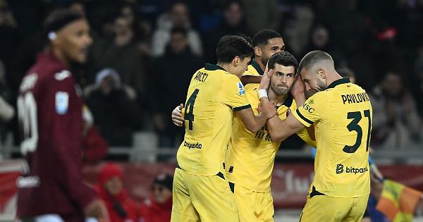 TORINO - Un Milan mai domo va sotto di due reti, rimonta e vince per 3-2 sul campo del Torino. Sono Rabiot e Pulisic, autore di una doppietta partendo dalla panchina, a suonare la carica per la formazione rossonera, passata inizialmente sotto a causa dei gol di Vlasic e Zapata. La prima svolta del match arriva già all'8', quando Tomori interviene in maniera scomposta in area e commette un ingenuo fallo di mano. L'arbitro assegna il calcio di rigore per i padroni di casa. Dal dischetto si presenta Vlasic, che supera Maignan e firma l'1-0 per i suoi. Gli ospiti sembrano ancora negli spogliatoi e i granata ne approfittano, trovando l'immediato raddoppio al 17'. Nkunku perde palla e Vlasic orchestra una rapida ripartenza, servendo Zapata che dalla destra fa partire un diagonale che trafigge Maignan. Un gol speciale per il colombiano, che va in gol a quasi un anno di distanza dall'ultima volta a causa di un grave infortunio al ginocchio. I rossoneri si scuotono e al 24' accorciano le distanze. Rabiot riceve palla dai 25 metri e lascia partire un sinistro meraviglioso che si infila sotto l'incrocio dei pali, battendo Israel per il 2-1 che riapre i conti. Alla mezz'ora, Leao accusa un problema muscolare ed è costretto a uscire dal campo. Si va al riposo sul 2-1. Al 10' della ripresa, i sette volte campioni d'Europa sfiorano il pareggio quando Israel respinge un colpo di testa di Bartesaghi, con Ricci che si avventa sulla respinta a botta sicura ma trovando ancora il portiere rivale pronto a salvare i suoi. Gli uomini di Allegri, oggi squalificato, vanno all'assalto della porta avversaria e firmano il pareggio al 22'. Pulisic, entrato da pochi secondi al posto di Bartesaghi, si fa trovare al posto giusto in area di rigore e raccoglie un cross di Saelemaekers dalla sinistra, battendo Israel con un piatto mancino che vale il 2-2. Maignan e compagni non si accontentano e al 32' completano la rimonta. Ricci si invola sulla destra e serve una palla a rimorchio per uno scatenato Pulisic, che con un sinistro al volo supera Israel nell'angolino per il 3-2 che fa impazzire il settore ospiti dello stadio. I ragazzi di Baroni accusano il colpo e nel finale non riescono a impensierire Maignan, con il risultato che non cambierà più. Grazie a questi preziosi tre punti, il Milan sale in vetta a quota 31, al pari del Napoli. Il Torino resta invece al quintultimo posto con 14 punti all'attivo. - foto Image - . xh9/gm/red 08-Dic-25 22:52